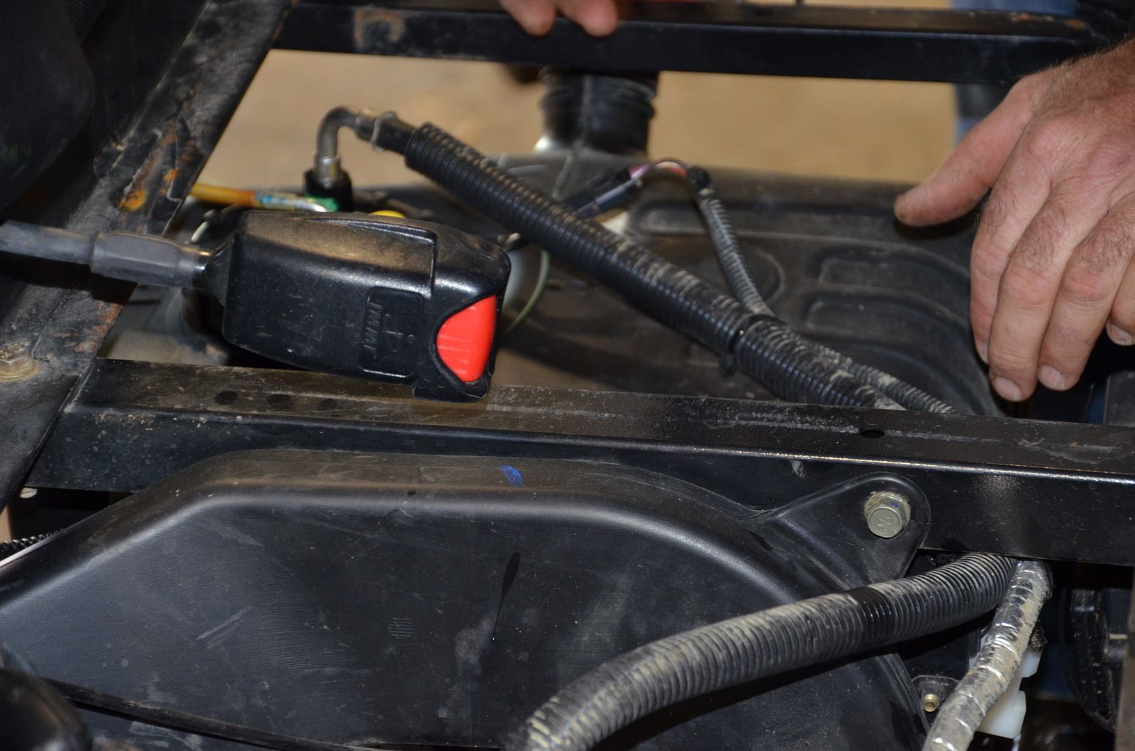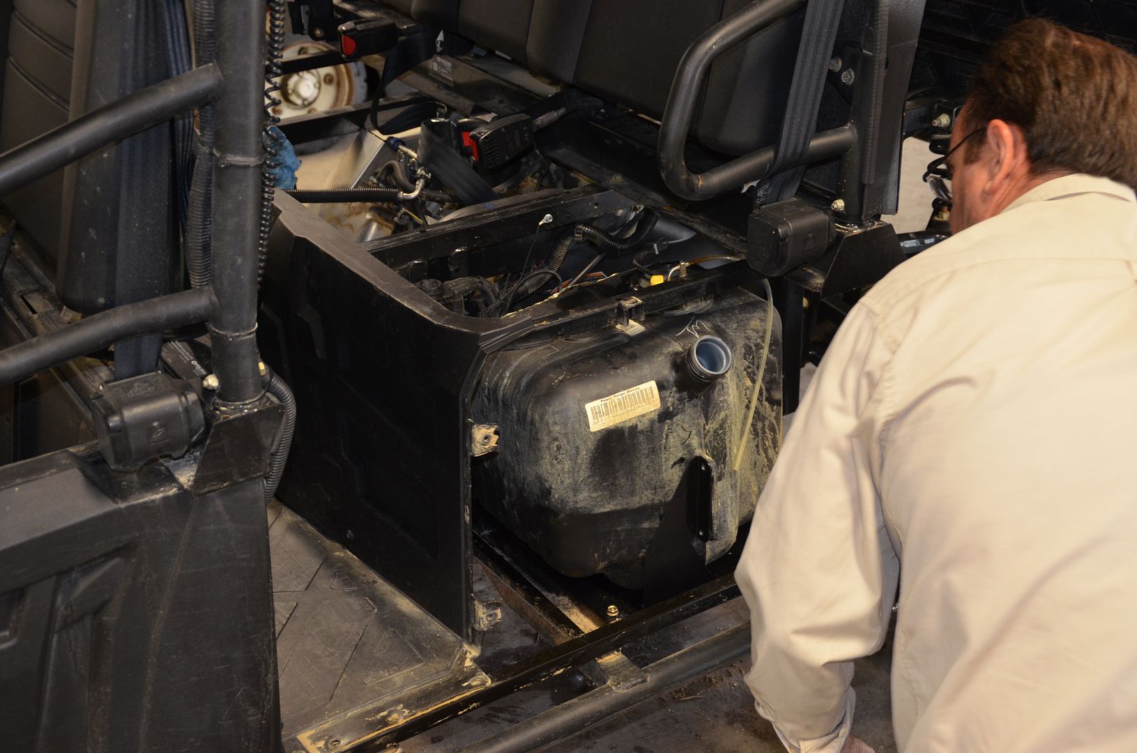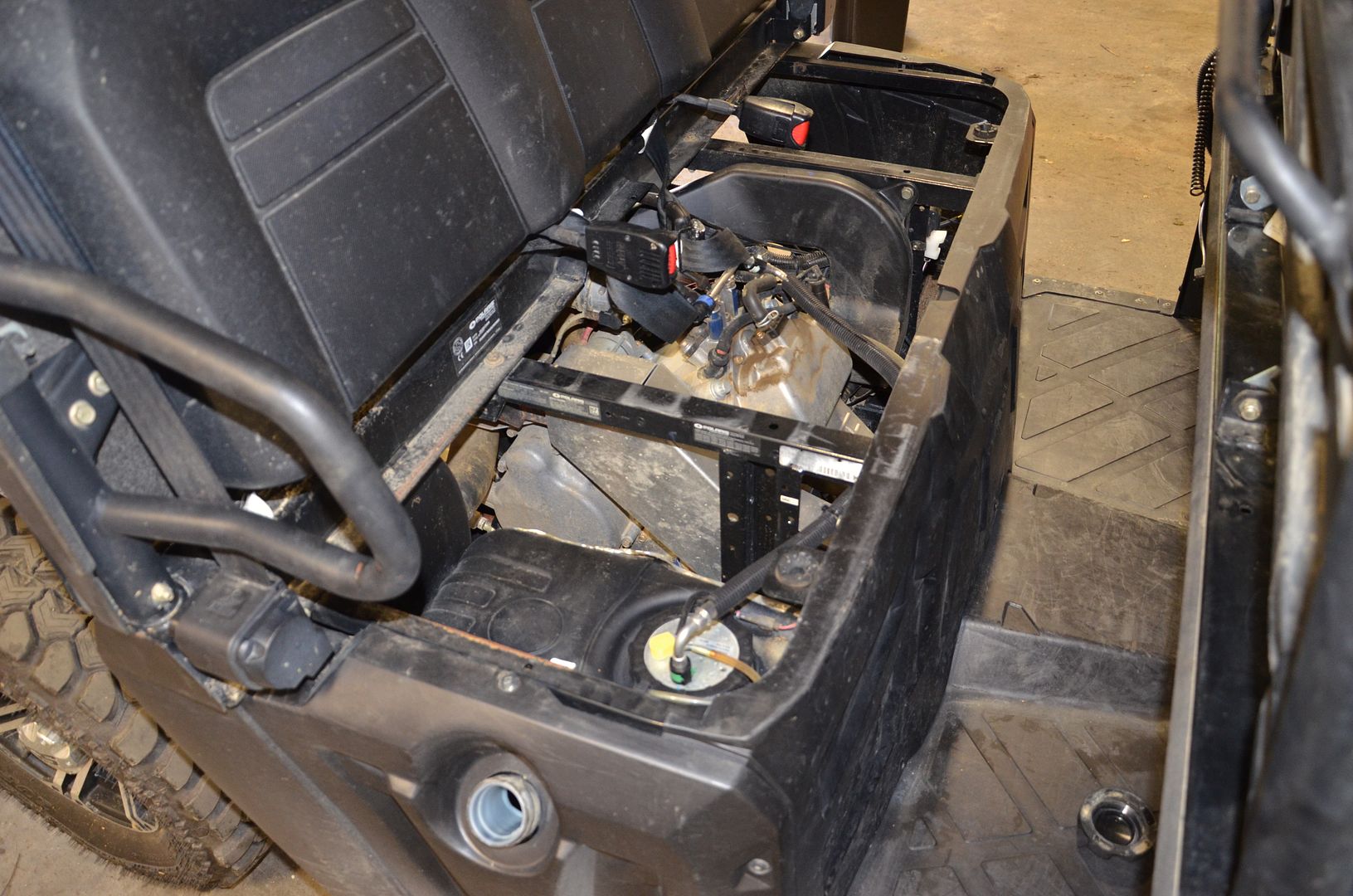 The first step in the installation of the PTO unit was to prepare to relocate the gas tank to the opposite side of the Ranger Crew. Fortunately the underseat side of the Ranger is essentially symmetrical. So this is very easy to do.
