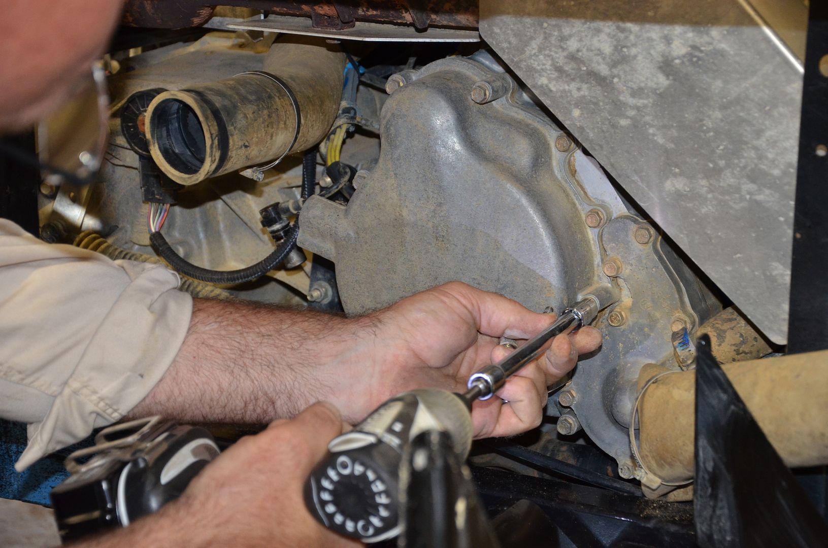 Now that the fuel tank is relocated, the PTO installation can begin.