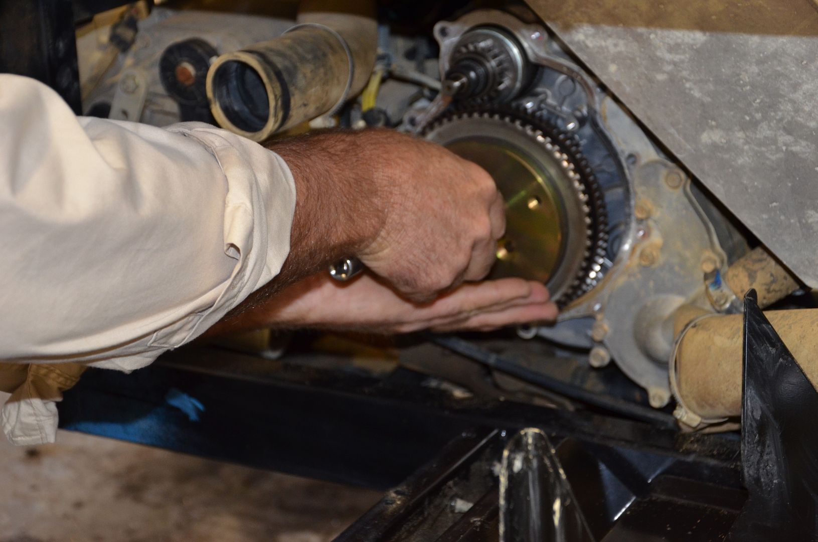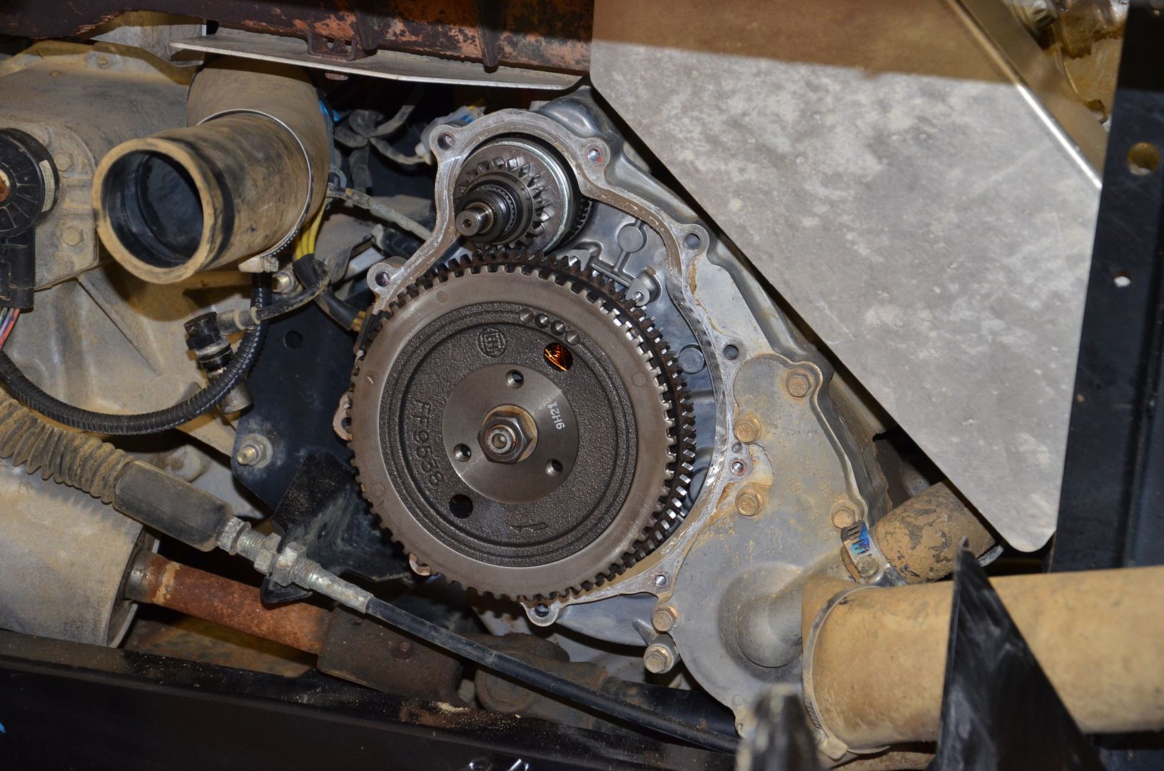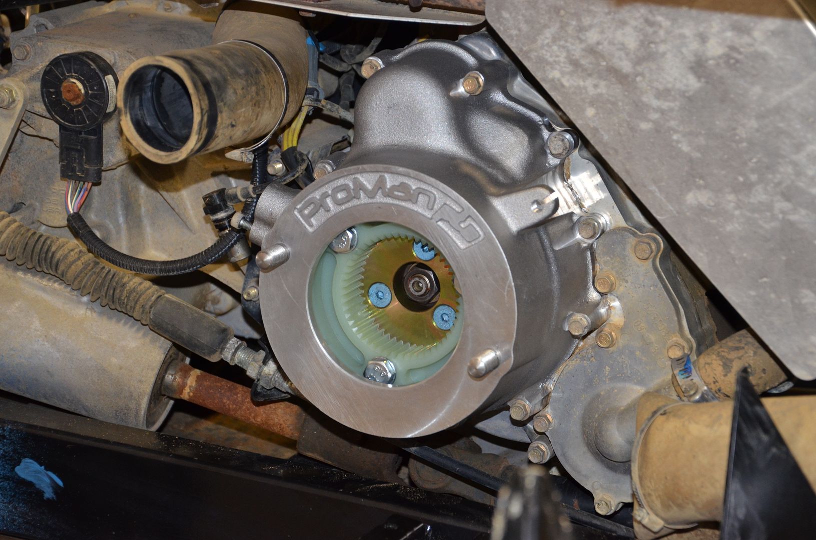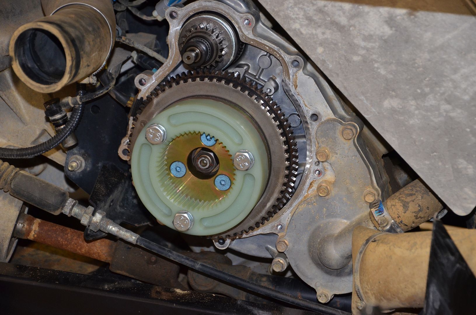 Once the Proman PTO flywheel adapter is installed, it is time to install the actual PTO coupler. The PTO coupler is a composite ring that has teeth that engage the and drive the PTO pump